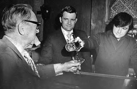 Steve Staiger, PAHA HistorianFrank Crist, far left, receives the first legal cocktail at the Shutter                                                                                Restaurant in Palo Alto on May 21, 1971